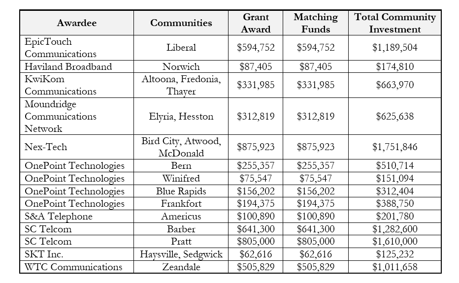 There will be a maximum of $1 million per grant, and each grant will cover up to 50% of eligible project expenses, meaning grant recipients must provide private funding matching the amount of the award. The program will prioritize broadband projects that address unserved areas, economically distressed communities, and areas of compelling in Kansas.