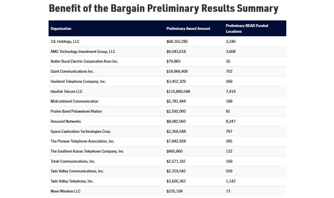 KOBD selected a total of 16 awardees to receive a total of $252,942,107 in BEAD grant funding.