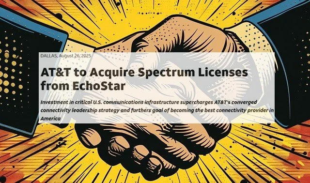 August 26, 2025 – AT&T has announced it is purchasing spectrum licenses from EchoStar for roughly $23 billion. Specifically, “AT&T will acquire approximately 30 MHz of nationwide 3.45 GHz mid-band spectrum and approximately 20 MHz of nationwide 600 MHz low-band spectrum for approximately $23 billion in an all-cash transaction, subject to certain adjustments.” EchoStar’s spectrum licenses cover virtually every market across the U.S. – over 400 markets in total. Also, AT&T and EchoStar have agreed to enhance their long-term wholesale network services agreement, under which EchoStar will operate as a hybrid mobile network operator (MNO) with AT&T as the primary network services partner. In the press release announcing the deal, AT&T lists the following as key details of the transaction: