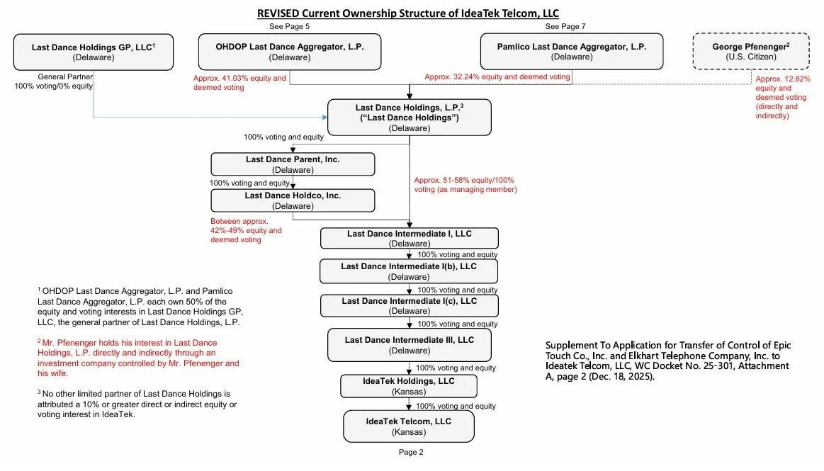 Immediately after the transaction closes, both Epic Touch and Elkhart Telephone are expected to convert to Delaware limited liability companies (Epic Touch Holdings, LCC and Elkhart Telephone Company, LLC). Thereafter, all of the equity ownership interests in both companies will be transferred to IdeaTek. As a result of that pro forma ownership transfer, Epic Touch will be a direct wholly owned subsidiary of IdeaTek, and Elkhart Telephone will be an indirect wholly owned subsidiary of IdeaTek.
