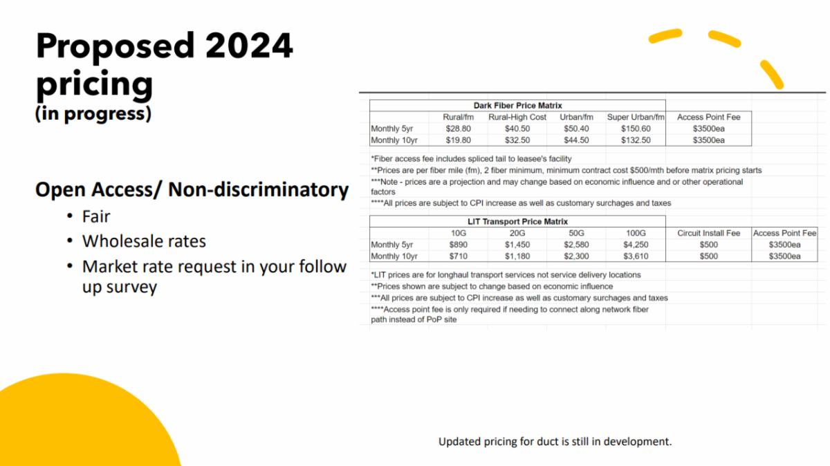 “If you have leased dark fiber or lit services in Kansas at the speeds listed in the Freestate Middle Mile pricing guidance (10G, 20G, 50G, 100G) within the past 12 months, we would appreciate it if you could share redacted information with Middle Mile Program Manager Russell Dunlap for use in benchmarking reasonable wholesale market pricing. Several of you have already provided this information, and we are grateful for your partnership. Your support helps us ensure that the Freestate Network is offered at competitive, open-access, and nondiscriminatory rates. Thank you for your continued collaboration as we update the Freestate Network Rate Sheet for 2025/2026.”